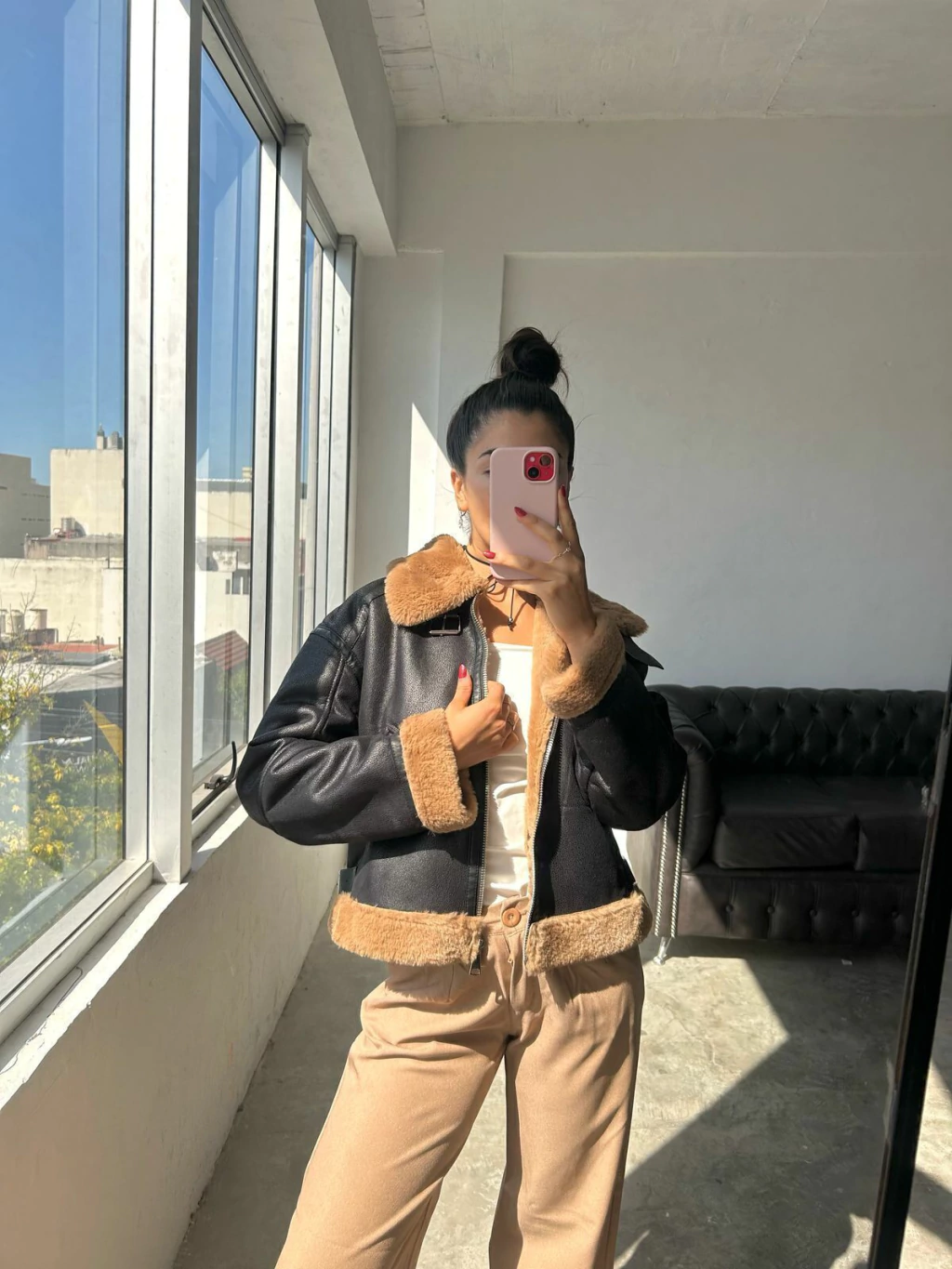 Campera gamulán importado de tela eco cuero sintético con cierre y bolsillos delantero. Por dentro esta forrada en corderito y es súuuper abrigada!
