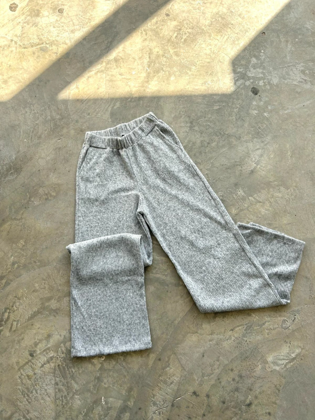 Pantalón palazzo de tela lanilla boucle premium con bolsillos y elástico en la cintura.